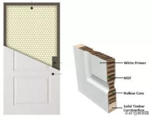 將木柴釘成門(mén)骨架邊框,內(nèi)填蜂窩紙,接著在骨架的兩面用膠合板、中纖維板貼三聚氰胺裝潢紙、薄木皮等,外表采取油漆進(jìn)行裝潢。