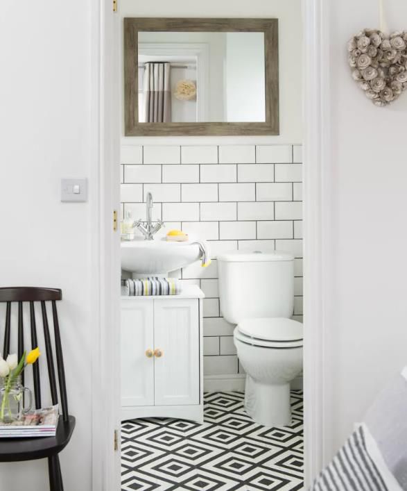 漂亮的鏡子、燈光和配飾增添了女性風(fēng)格,而帶有深色灌漿的地鐵瓷磚則平衡了外觀。一旦時(shí)尚改變了這個(gè)小空間,只需幾卷新壁紙即可輕松更新,以獲得全新的外觀。