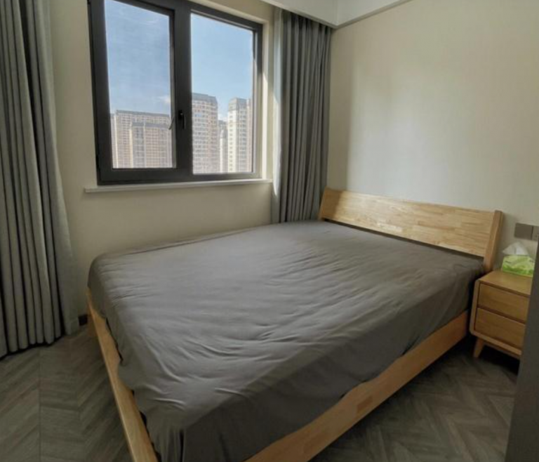 次臥空間不大,一張?jiān)?.5米的床加上一個(gè)床頭柜和衣柜,基本沒(méi)有什么多余的空間了。對(duì)于臥室來(lái)說(shuō),非常常見(jiàn)了。地面鋪貼的木地板,顯得很有檔次,效果真心不錯(cuò)。沒(méi)有瓷磚那種冷冰冰的感覺(jué),更舒服。