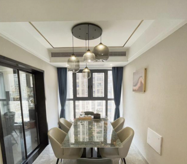 這是餐廳,布置了一張方形巖板餐桌,占用的空間大小位置合適,一家人開(kāi)開(kāi)心心坐在一起用餐,真的很幸福了。空間不大,但是看著這個(gè)角度,跟我們常見(jiàn)的樣板房一樣,顏值很高,也很時(shí)尚。餐廳大大的落地窗,采光非常充足,光線很好。而且旁邊就是廚房了,煮好的飯菜可以很快端出來(lái),方便用餐!