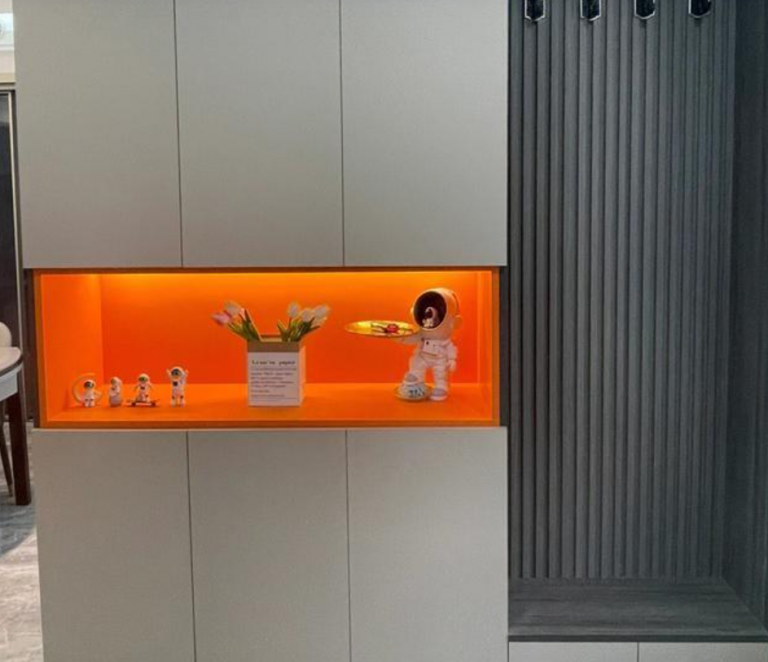 裝修輕奢風(fēng)格,從入戶門進(jìn)來(lái)?yè)碛歇?dú)立的玄關(guān),根據(jù)需求設(shè)計(jì)了一個(gè)自帶換鞋凳上下兩層的鞋柜。鞋柜整個(gè)色調(diào)都是灰色,中間加了橙色的搭配,視覺(jué)上很搶眼,類似打破了整個(gè)鞋柜寧?kù)o的感覺(jué),讓人一進(jìn)屋看到,眼前一亮!鞋柜安裝了黑色的掛鉤,以后可以掛包包或者衣物,真心不錯(cuò)。家里如果也喜歡這樣的設(shè)計(jì),可以參考一下!
