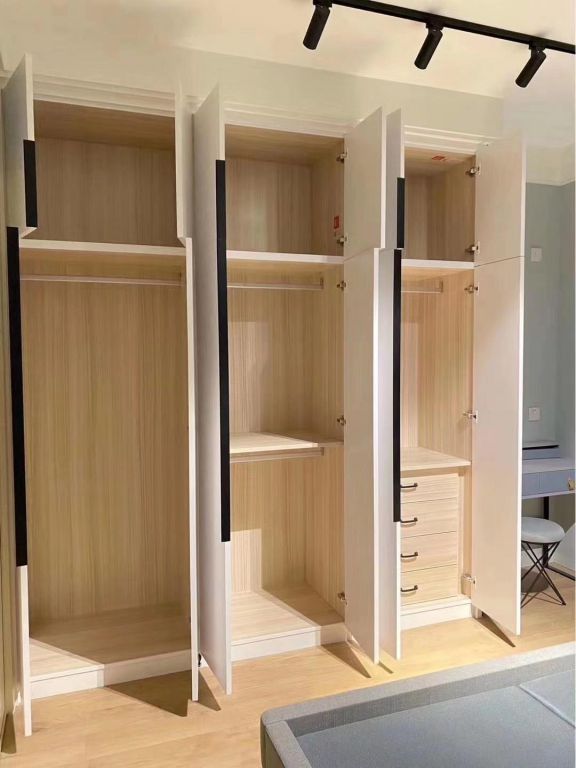 而木工打柜子,直接減少了眾多繁瑣的步驟,只需要自己購買板材和輔材,讓木工在家里現(xiàn)場(chǎng)打即可,用時(shí)大概十天左右。