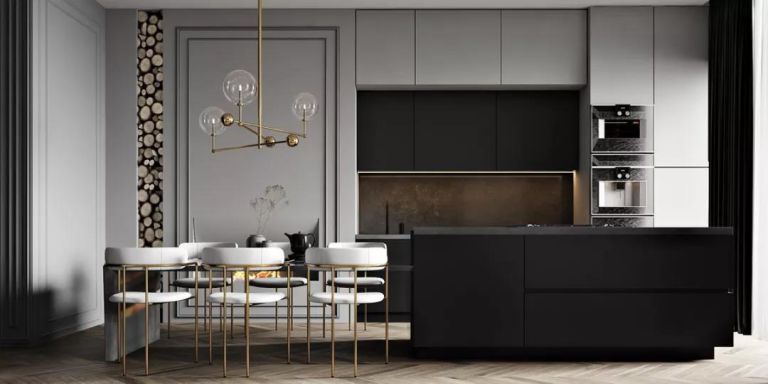喜歡酷酷的工業(yè)風(fēng)設(shè)計(jì)的你,可以試一下暗黑系護(hù)墻板,配上金屬、玻璃等新材料裝飾讓室內(nèi)極強(qiáng)的藝術(shù)感。