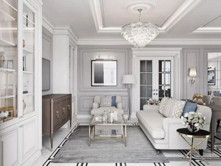 護(hù)墻板上再搭配適當(dāng)?shù)木€條進(jìn)行裝飾,使得整個(gè)空間奢華感滿滿。