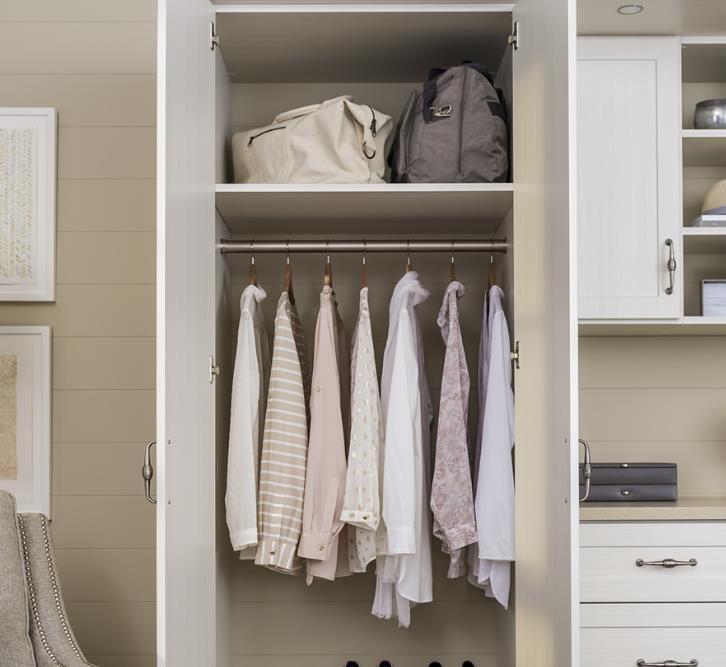 在大多數(shù)衣柜壁櫥中,都需要有掛衣服的空間。大多數(shù)人從未想到的是,衣架上的衣服從墻上伸出 20-21 寸。出于這個原因,內(nèi)置衣柜需要一些 24 寸深的部分,這樣櫥柜門就不會砸碎你的衣服。