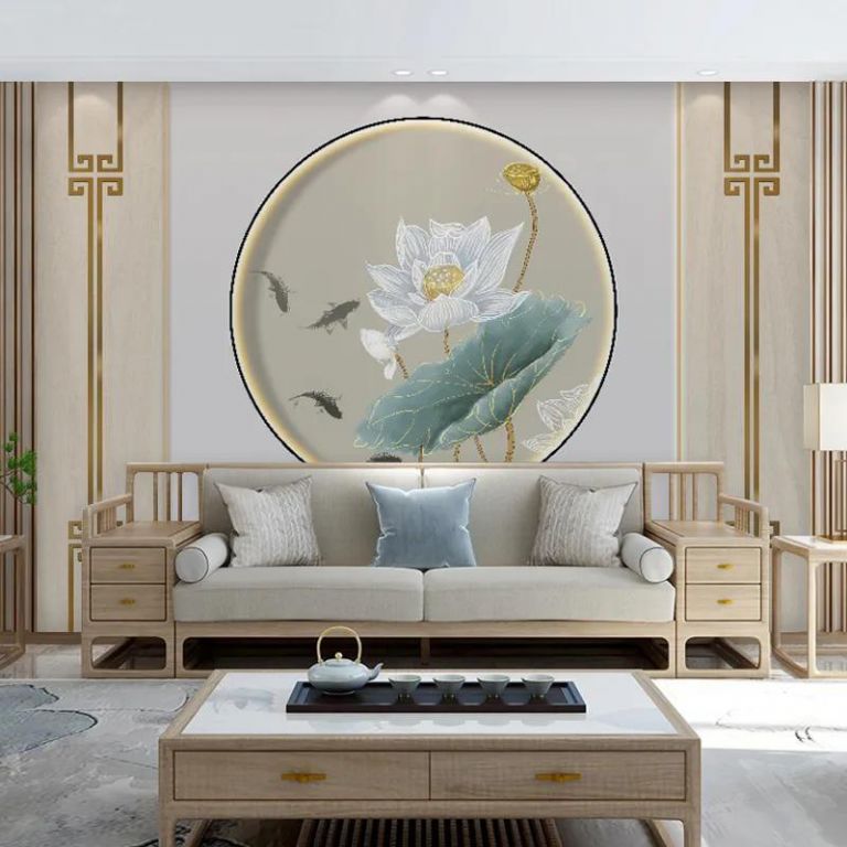 新中式壁布,將現代元素和古典中式元素相結合,以現代人的審美需求,打造富有傳統(tǒng)韻味的背景墻。